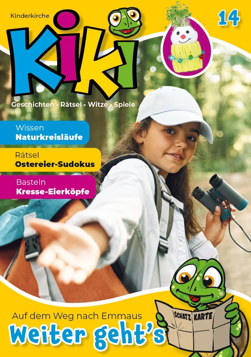Jesus ist gestorben. Zwei traurige Jünger wandern nach Emmaus. Sie denken, dass ihr gemeinsamer Weg mit Jesus zu Ende sei. Da treffen sie einen Mann. Sie laden ihn zu sich ein. Als der Gast das Brot verteilt, merken die Jünger, dass sie mit Jesus am Tisch sitzen. Er lebt! Also geht der Weg mit ihm doch weiter. Diese Geschichte macht Mut, nie aufzugeben und stets darauf zu vertrauen, dass bei Gott Wege nie zu Ende gehen, sondern wieder von vorn beginnen. Das vorliegende Oster-Kiki steckt voller bunter Kreativideen und Aktivitäten. Es passt mit seiner positiven Botschaft in den anbrechenden Frühling.