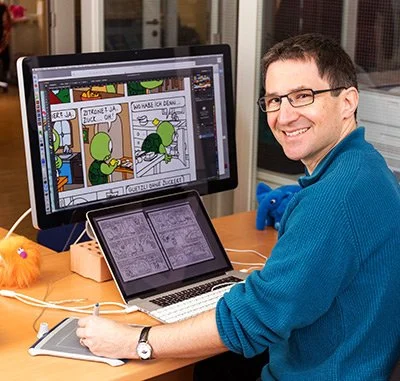 Christoph, der Erfinder von Kiki, arbeitet an einem Comic etwa 5 Stunden.