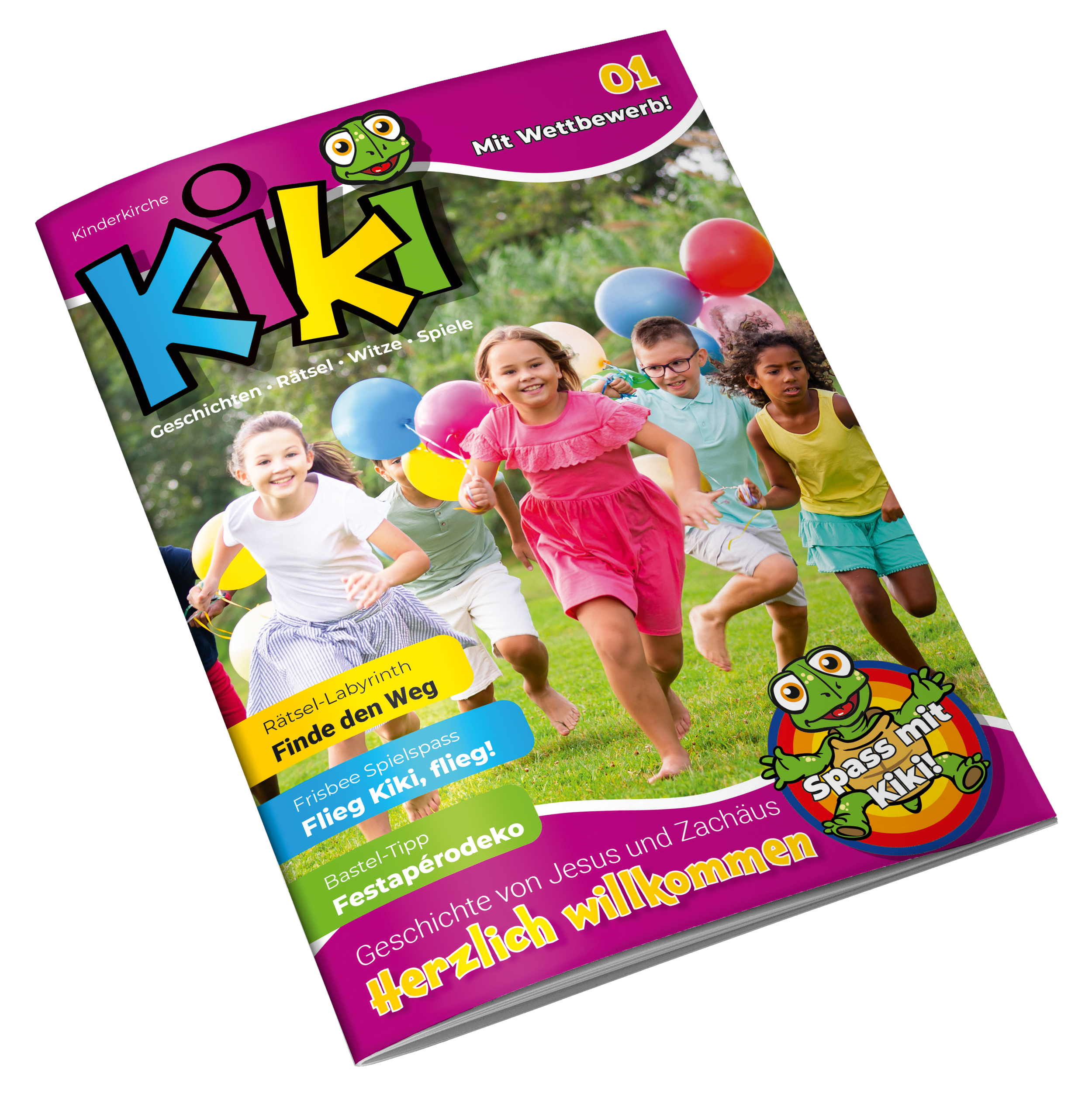 «Kiki», die fröhliche und neugierige Schildkröte, passt sich dem Alter der Kinder an. Als Identifikationsfigur für Kinder in der Kirche begleitet sie mit ihren Fragen und Überlegungen durch die Heftseiten.