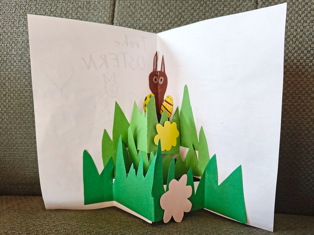Alia ist 9 Jahre alt und hat sofort die tolle Osterkarte aus dem Heft 22 nachgebastelt. Ganz alleine. Die Karte schickt sie ihrer besten Freundin.